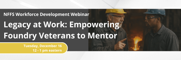 Foundries rely on the expertise and experience of their veteran employees to keep operations running smoothly and safely. However, much of this institutional knowledge can be lost if it isn’t actively shared with younger team members. This webinar will explore practical ways for foundry leaders to empower experienced workers to mentor and guide newer employees—without fear that they will be replaced.
