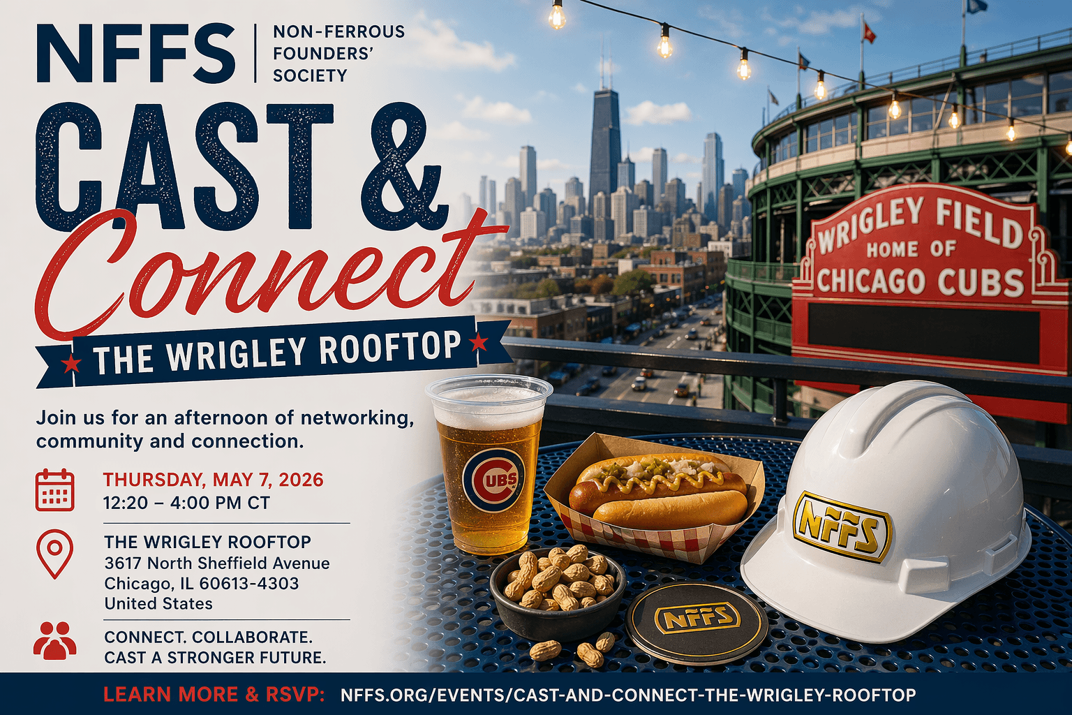 Cast & Connect: The Wrigley Rooftop on May 7 puts you in a setting where real conversations actually happen. NFFS has secured a Wrigley Rooftop where industry peers can get together to enjoy an afternoon of Cubs vs. Reds baseball with free ballpark food, beers, and tons of valuable networking opportunities.