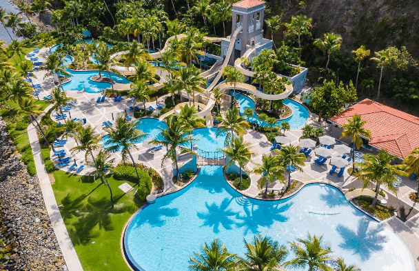 El Conquistador Resort boasts over 600 ocean view guestrooms and suites and features an array of world-class amenities, exhilarating activities and personalized guest services including sea-side Coqui Water Park, an Arthur Hills designed 18-hole, par 72 championship golf course, four freshwater outdoor pools, Palomino Island, a private 100-acre Island with pristine white sand perfect for sunbathing, water sports and more. The resort features four tennis courts, four pickleball courts, retail shops and a 35-slip private marina offering deep sea fishing charters, sailboats, catamarans, and yachts are also available. Dining options seem limitless with over seven onsite restaurants and cafés.